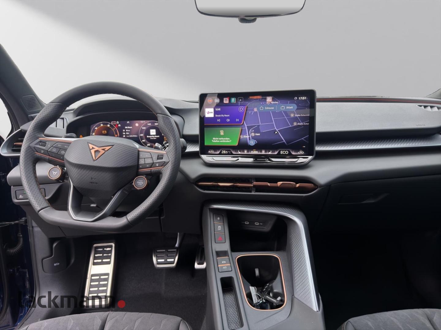 • Weiteres: Geschwindigkeits-Regelanlage (Tempomat), Mittelarmlehne vorn, Rückfahrkamera, Reifen-Reparaturset, Lendenwirbelstützen vorn, elektr. verstellbar, Airbag Beifahrerseite abschaltbar, Notrufsystem, Dachreling schwarz, Nebelscheinwerfer LED mit Abbiegelicht, USB-Schnittstelle vorn (2-fach, Typ C), Elektron. Stabilitäts-Programm (ESP) mit Bremskraftverstärker elektro-mechanisch, Scheinwerfer Voll-LED, Fensterheber elektrisch vorn + hinten mit Komfortschaltung, Getriebe 6-Gang - Doppelkupplungsgetriebe DSG, Zentralverriegelung / Startanlage Keyless Go (Start-Stop-Knopf), Isofix-Aufnahmen für Kindersitz an Beifahrersitz und Rücksitz (inkl. i-Size-Kindersitze), Kombiinstrument digital (10,25 Zoll), Radstand Standard, Fahrassistenz-System: Ablenkungs- und Müdigkeitserkennung, Geschwindigkeitsbegrenzer mit vorausschauender Geschw.-Regelung, Schadstoffarm nach Abgasnorm Euro 6e, Fahrassistenz-System: Kreuzungs-Assistent (Crossroad Assist), Lichtassistent (Coming Home, Leaving Home), Hybrid 150 kW (Motor 1,5 Ltr. - 110 kW TSI eHybrid), Connectivity-Box, Sonderlackierung Fiord-Blau, LM-Felgen, Seitenairbag vorn mitte (Central Airbag), Head-up-Display, Lendenwirbelstützen vorn, elektr. verstellbar, Sitze vorn elektr. verstellbar (links mit Memory), Heckklappe/-Deckel elektr. betätigt (öffnen + schliessen, sensorgesteuert), Außenspiegel elektr. verstell-, heiz- und anklappbar, Spiegelabsenkung, Welcome Light, Memory, Kombiinstrument digital (virtual cockpit), Kamerasystem Umgebungsansicht (Top View, 360°), Kombiinstrument digital (10,25 Zoll), Fahrassistenz-System: Spurhalteassistent Plus inkl. Travel Assist, Emergency Assist und Stauassistent, Sitzbezug / Polsterung: Stoff Dinamica / Kunstleder Soul Black / Dark Slate-Grau mit Copper Steppung, Seitenscheiben hinten und Heckscheibe abgedunkelt, Mittelarmlehne hinten, Schließ-/Startsystem Kessy, Lenkrad heizbar (Sport/Leder) mit Multifunktion und Schaltfunktion, Anhängerkupplung (Kugelkopf mit elektr. Entriegelung, schwenkbar), Ambiente-Beleuchtung Smart Ambient Light mit Beleuchtung in Türinnenverkleidung, Edge-Paket, Design-Paket Dynamic, Skyline-Paket, Intelligent-Drive-Paket XL, Digital Drive-Paket, Wegfahrsperre (elektronisch), Reifenkontroll-Anzeige, Licht- und Regensensor, Airbag Fahrer-/Beifahrerseite, Heckleuchten LED mit dynamischem Blinklicht, Parkbremse elektrisch mit Auto-Hold-Funktion, Full Link (MirrorLink, Apple CarPlay und Android Auto), Tagfahrlicht LED, USB-Ladeanschlüsse (2-fach, Typ C) für 2.Sitzreihe, Kopf-Airbag-System, Seitenairbag, Ambiente-Beleuchtung Smart Ambient Light, Panorama Schiebe-/Hebedach elektrisch, Abbiegebremsfunktion und Ausweichunterstützung, Antriebsart: Frontantrieb, Audio-Navigationssystem mit Touchscreen Farbbildschirm 12,9, Audiosystem mit 12,9 Touchscreen-Farbdisplay, Außenspiegel elektr. anklappbar, Automatische Distanzregelung (ACC), Berg-Anfahr-Assistent, Climatronic 3-Zonen, Diebstahl-Warnanlage mit Innenraumüberwachung und Abschleppschutz, Einparkhilfe vorn und hinten, Fahrprofilauswahl (CUPRA Drive Profile), Fernlichtassistent, Fußraumbeleuchtung LED, uvm.