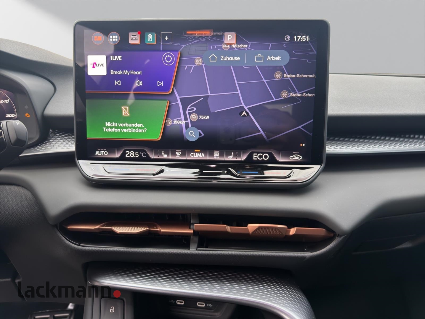 • Entertainment: Navigationssystem, Soundsystem, Radio, Telefonvorbereitung, USB-Anschluss, MP3, Bluetooth, Freisprecheinrichtung, Apple CarPlay, Android Auto, Sprachsteuerung, DAB, Touchscreen, Induktionsladen für Smartphones, Musikstreaming